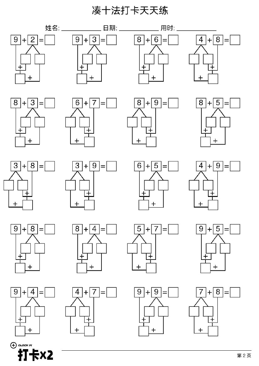 首页 > 全部 > 口算计算 > 一年级(上)数学 凑十法破十法练习题