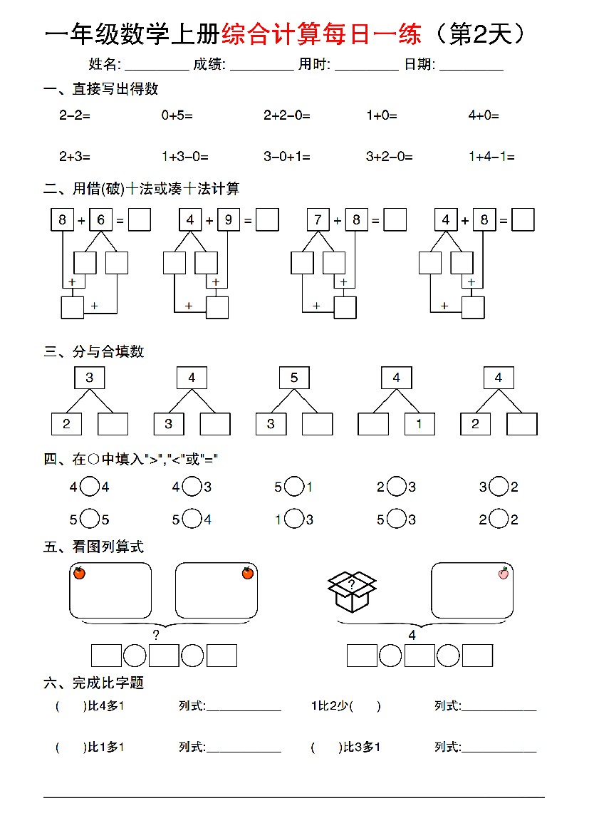 首页 > 全部 > 口算计算 > 一上人教版数学【综合计算每日一练】