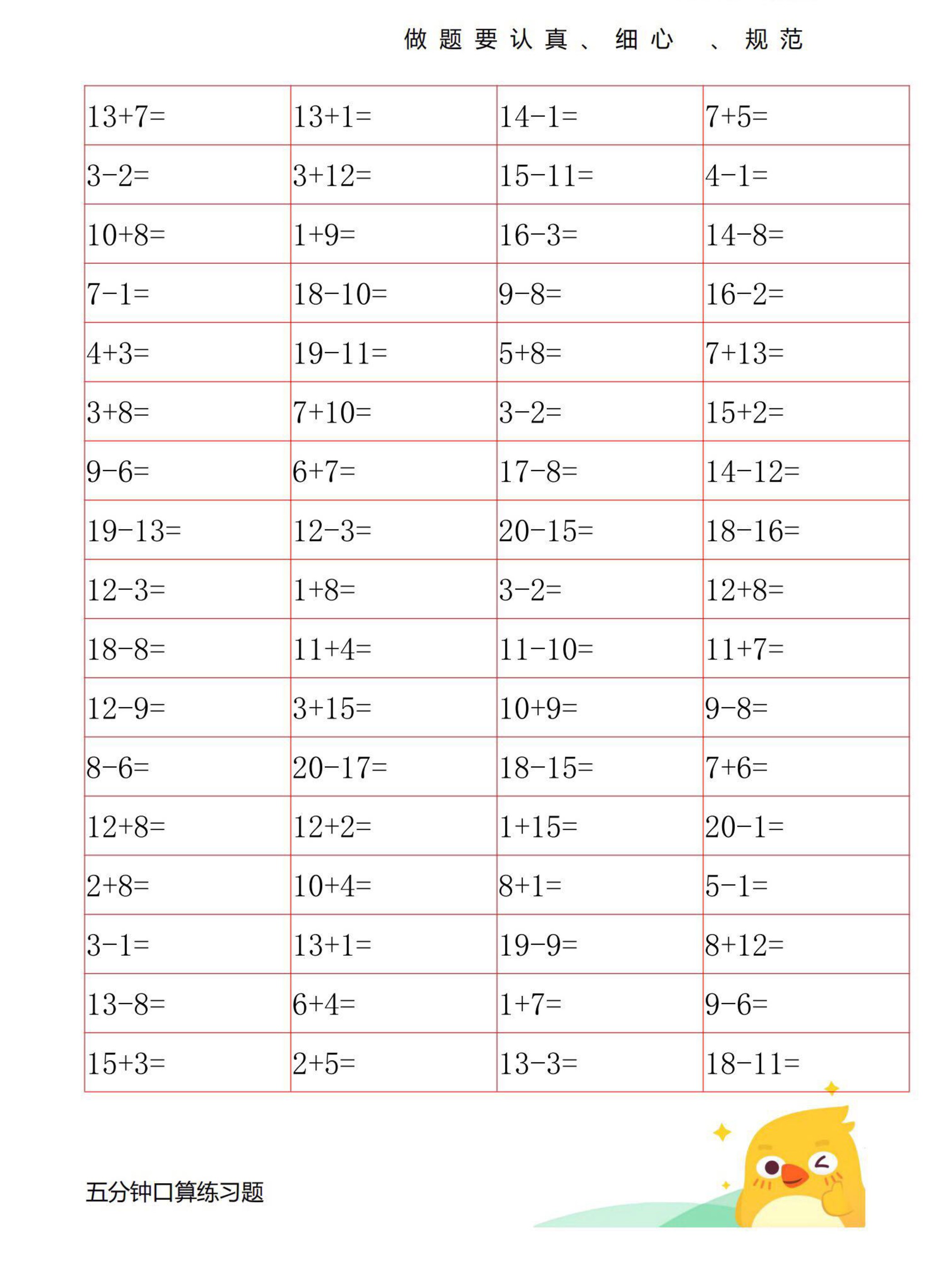 首页 > 全部 > 口算计算 > 【专项】20以内口算练习