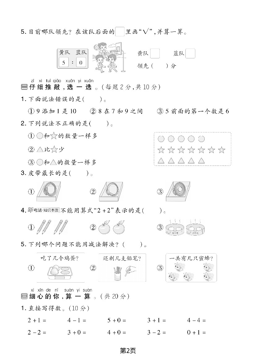 首页 > 全部 > 期中试卷 > 一年级(上)数学期中测试卷2《北师版》