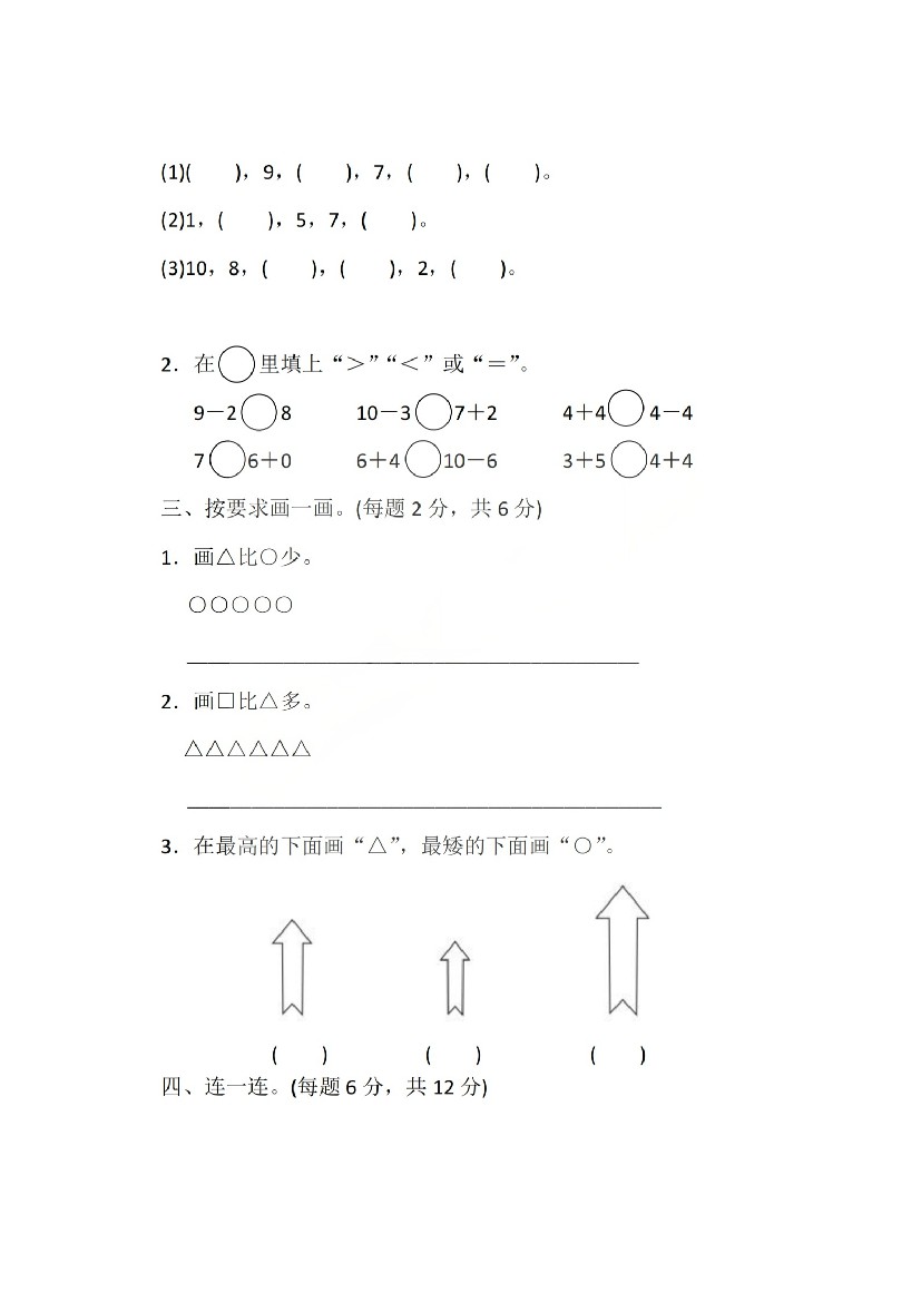 小学 一上数学25秋期中模拟测试卷北师版
