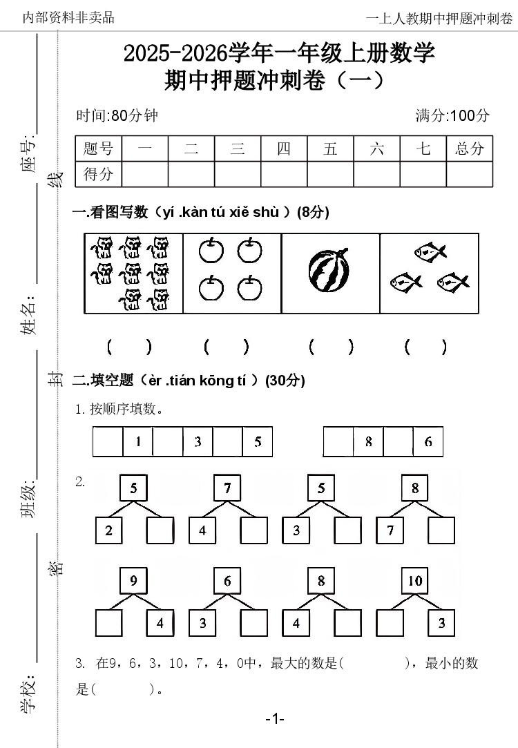 首页 > 全部 > 期中试卷 > 2025一年数学上册人教版期中押题卷五套