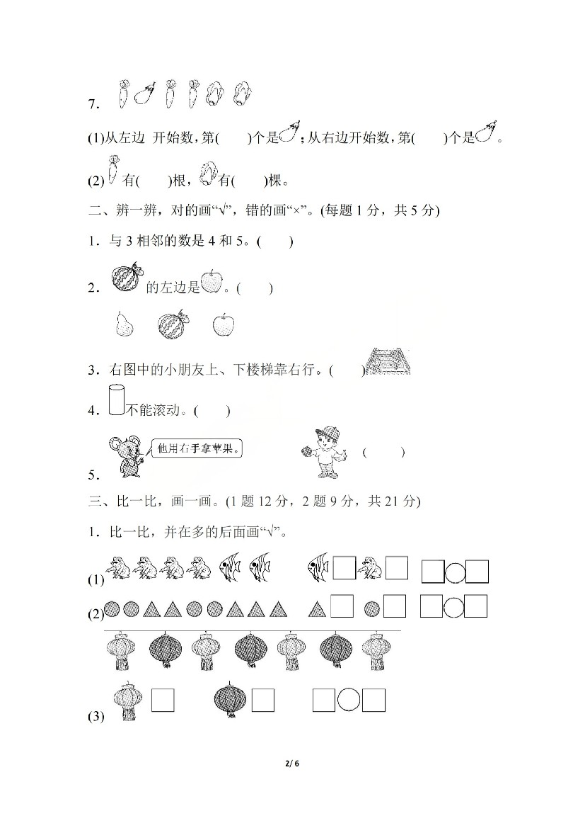 小学 一上数学25秋期中模拟测试卷人教版
