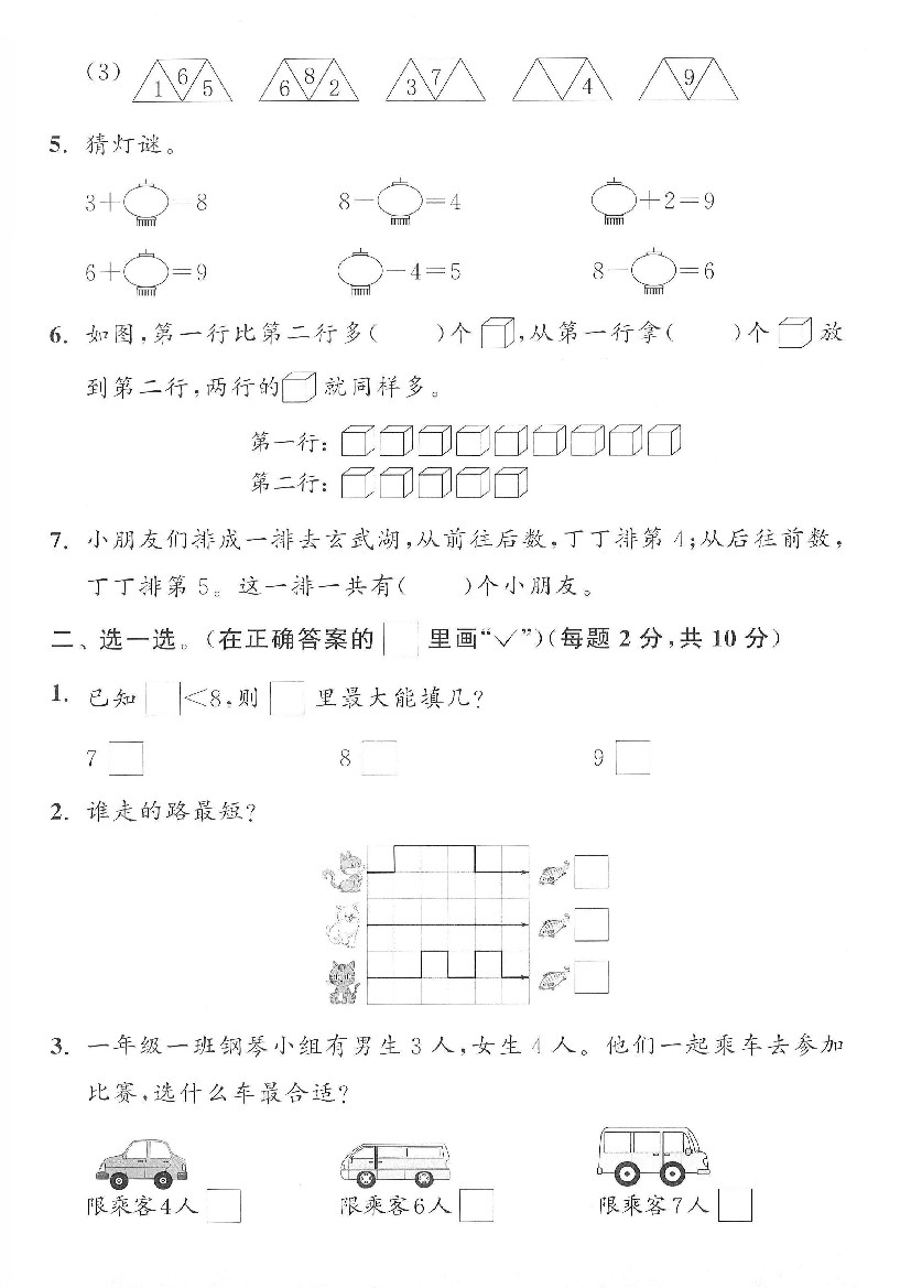 首页 > 全部 > 期中试卷 > 一年级(上)数学期中测试卷《苏教版》