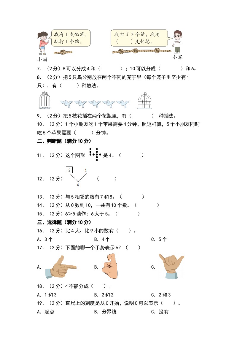 首页 > 全部 > 易错练习 > 【沪教】一上数学(易错卷)第三单元 10以内的数 高频易错卷-(A4版)(沪教版)