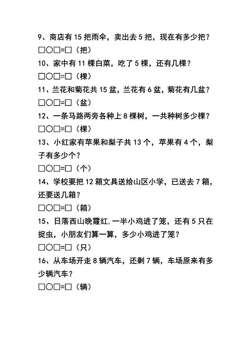 首页 > 全部 > 应用练习 > 一年级(上)数学 解决问题专项练习题