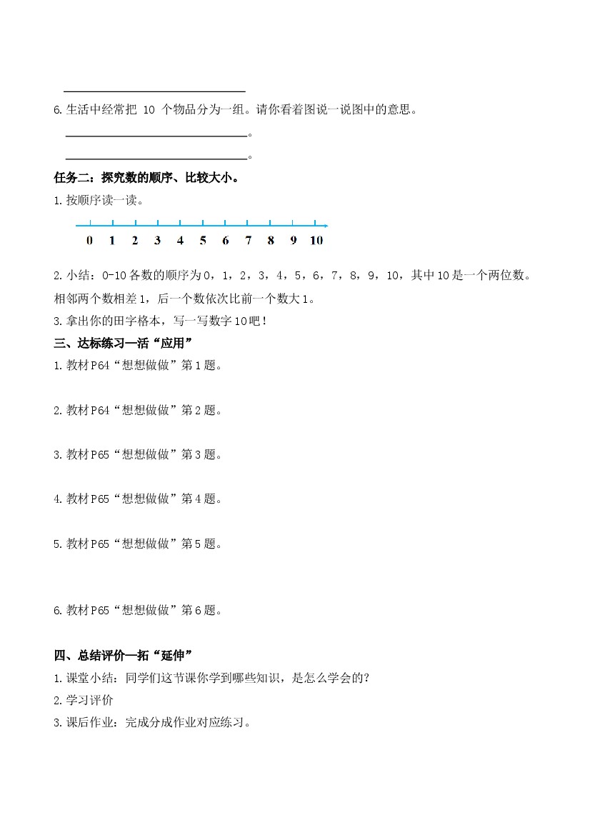 小学 一年级上册第四单元 第1课时 10的认识(学习任务单)-(苏教版•2025秋)