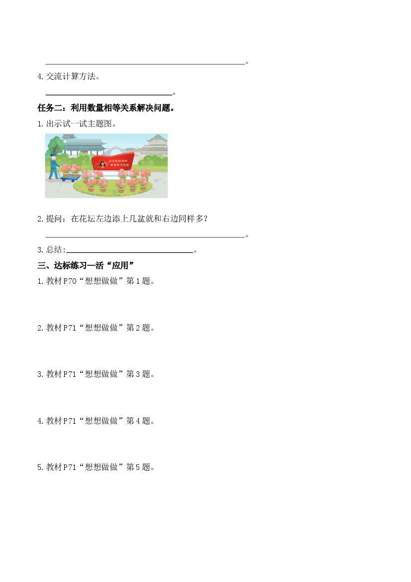 首页 > 全部 > 预习清单 > 一年级上册第四单元 第4课时 求未知加数(学习任务单)-(苏教版•2025秋)