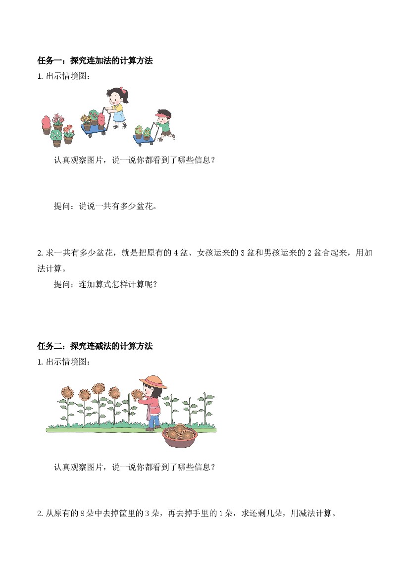 首页 > 全部 > 预习清单 > 一年级上册第二单元 第4课时 连加、连减和加减混合(学习任务单)-(苏教版•2025秋)