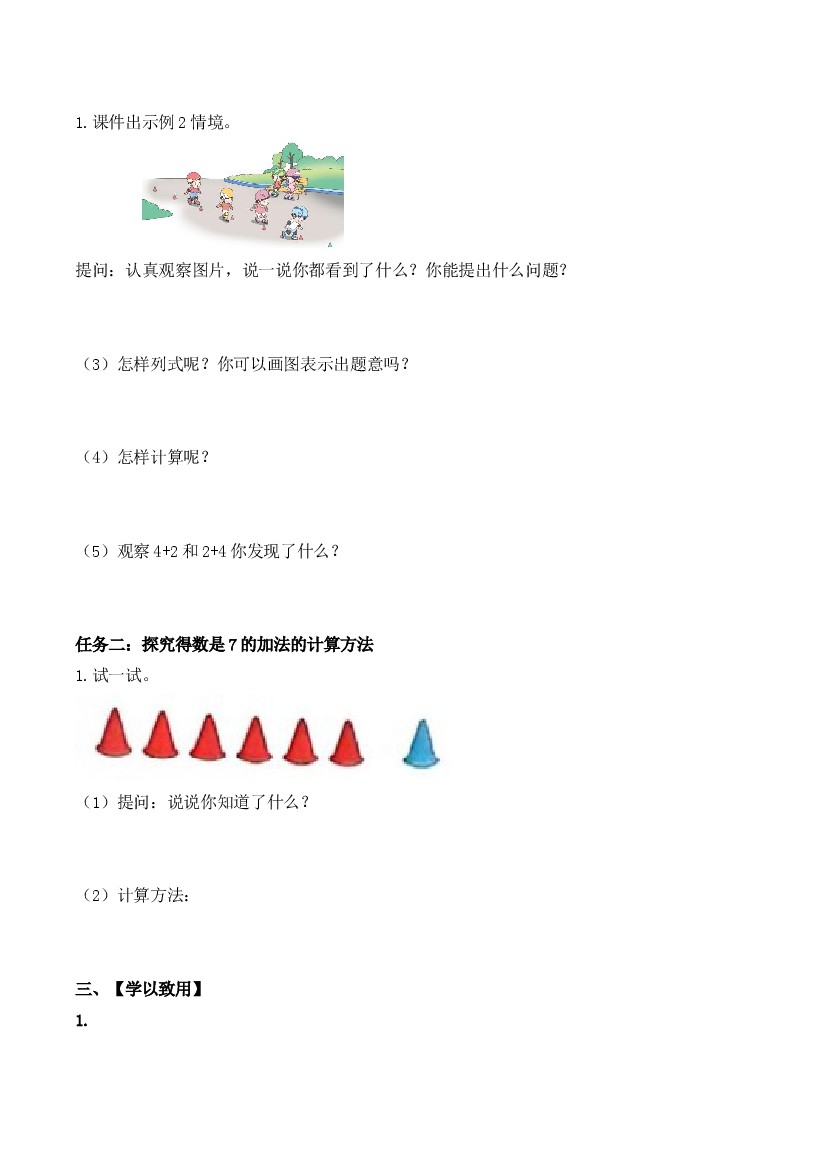 小学 一年级上册第二单元 第2课时 得数是6-9的加法(学习任务单)-(苏教版•2025秋)
