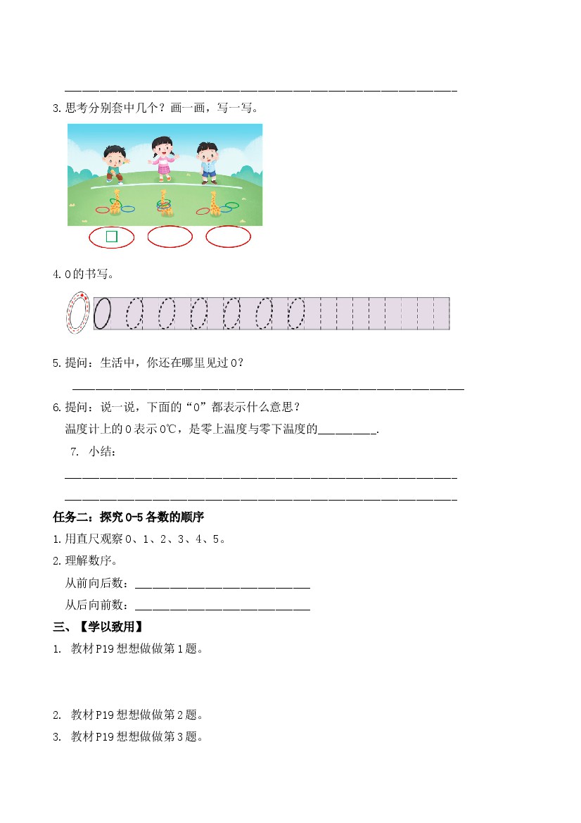 一年级上册第一单元 第4课时 认识0(学习任务单)-(苏教版•2025秋)