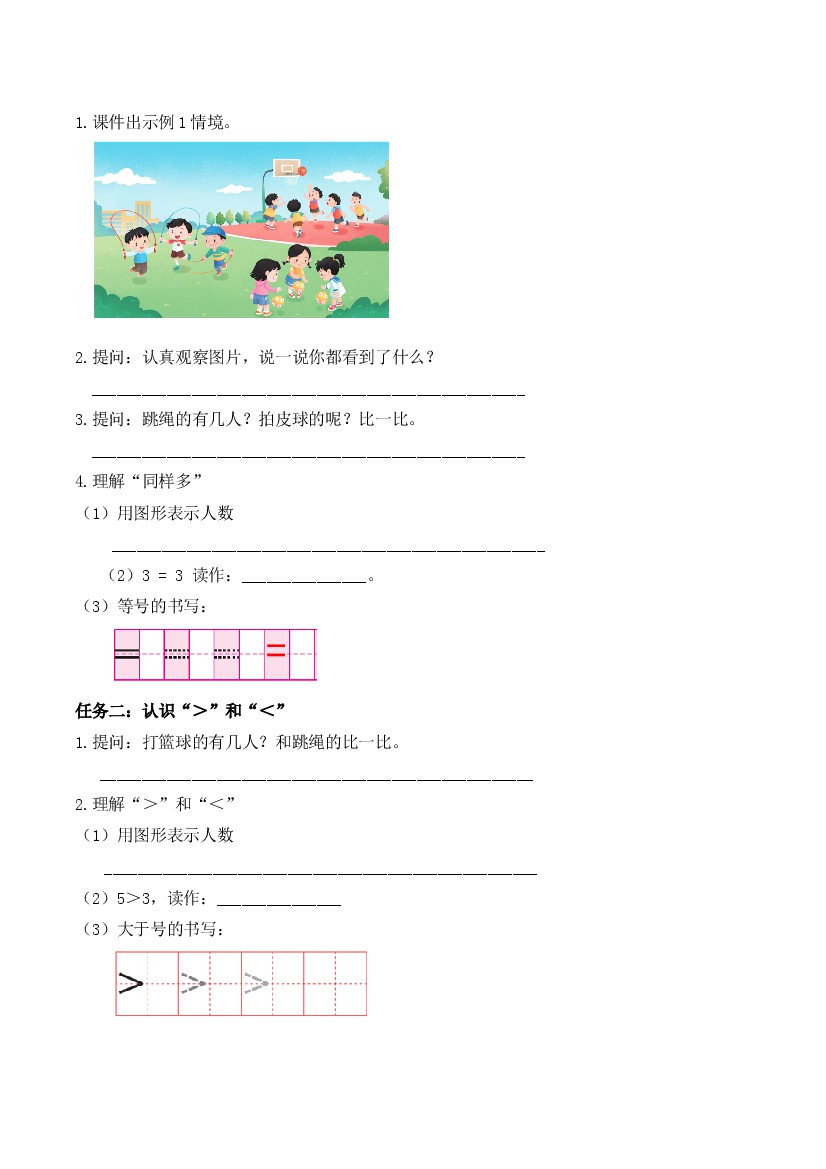 小学 一年级上册第一单元 第5课时 =和>、<(学习任务单)-(苏教版•2025秋)