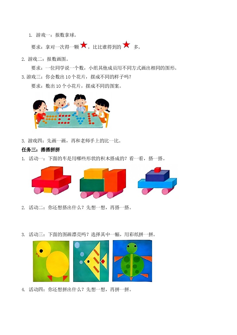 小学 一年级上册活动课:数学游戏分享(一)(学习任务单)-(苏教版▪2025秋)