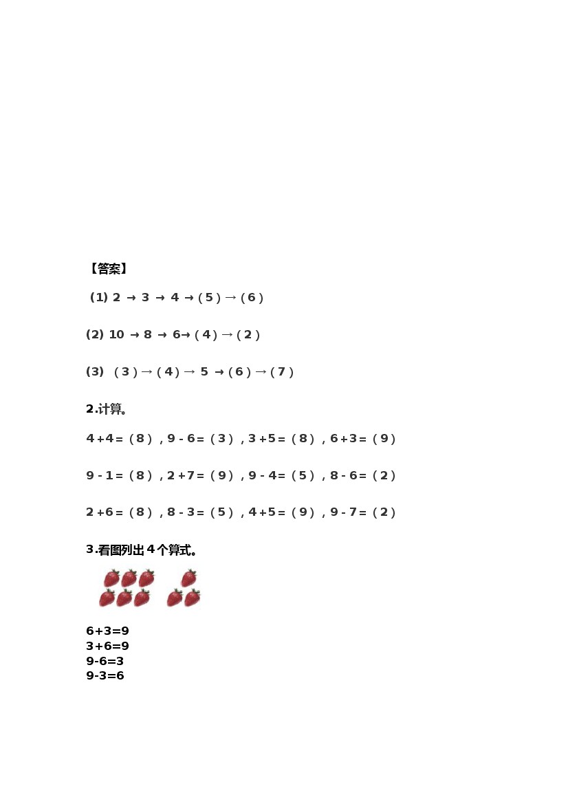 小学 一上数学(北京版)(30)--练习题-5.4