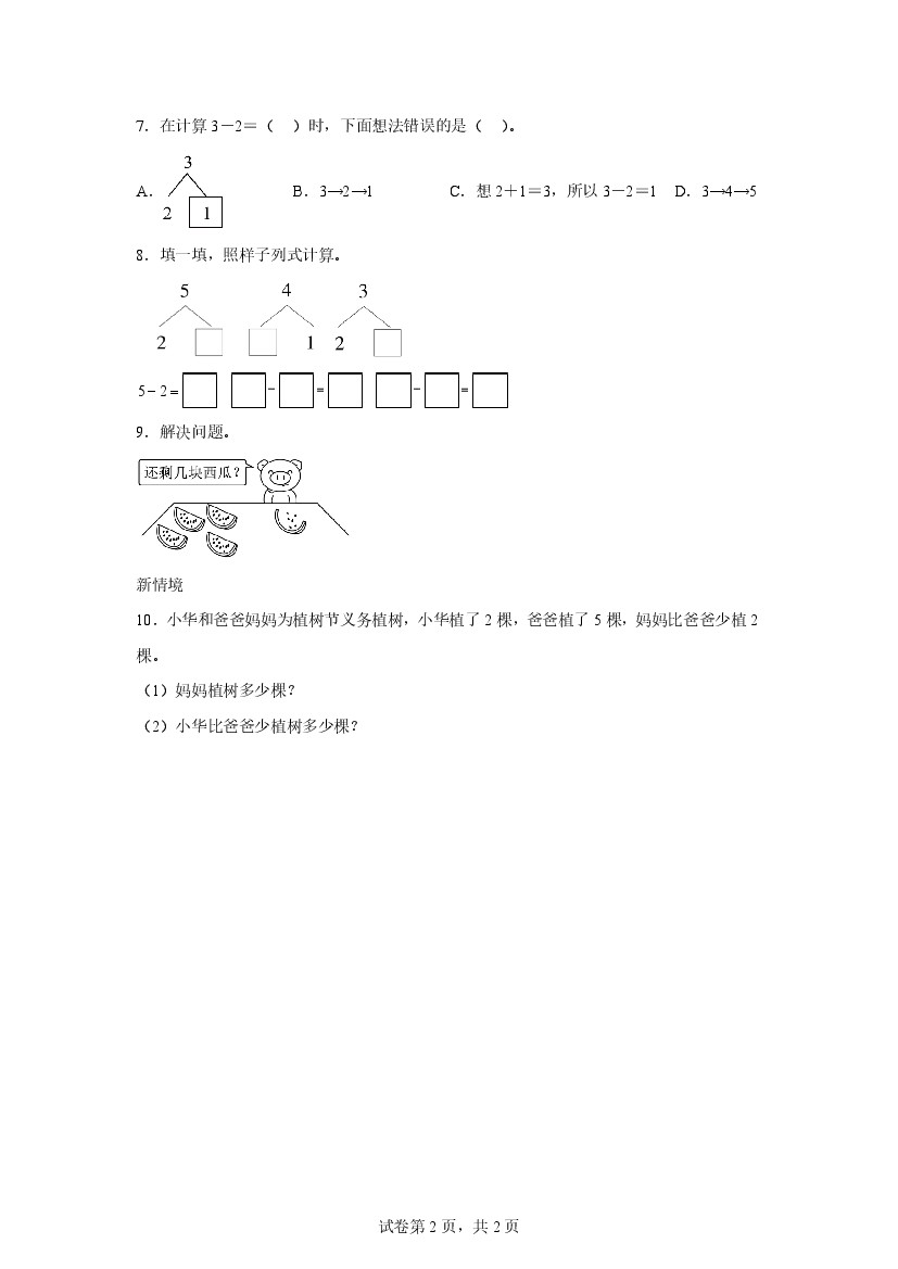 小学 25新一年级数学人教1.2