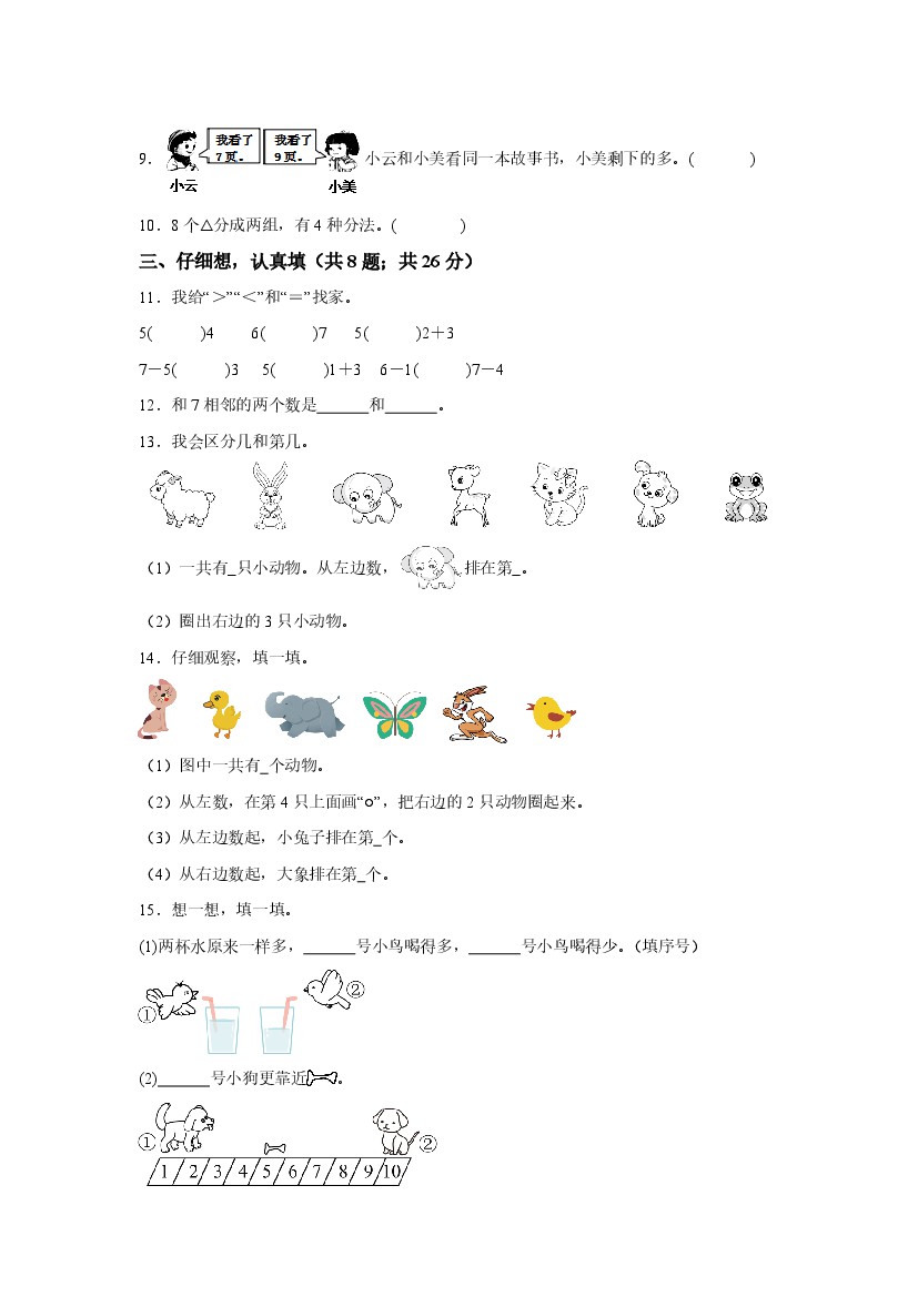 首页 > 全部 > 单元测试 > 北师大版数学一年级上册第一单元《生活中的数》培优冲关检测卷(1)