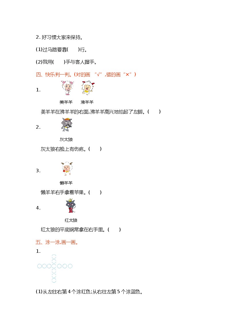 小学 一上数学(青岛54版)第四单元测试卷(A)