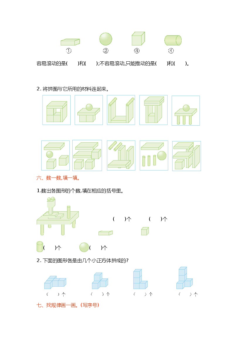 小学 一上数学(青岛54版)第六单元测试卷(A)