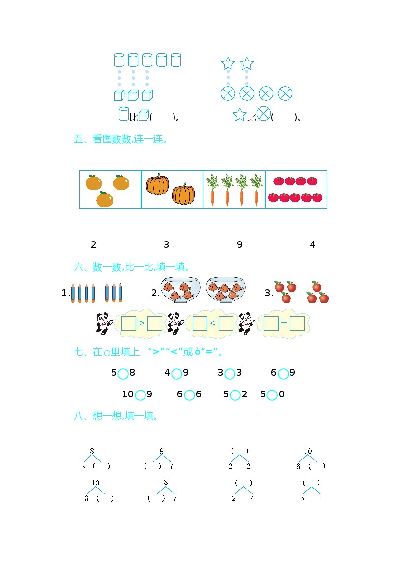 小学 一上数学(青岛54版)第一单元测试卷(B)