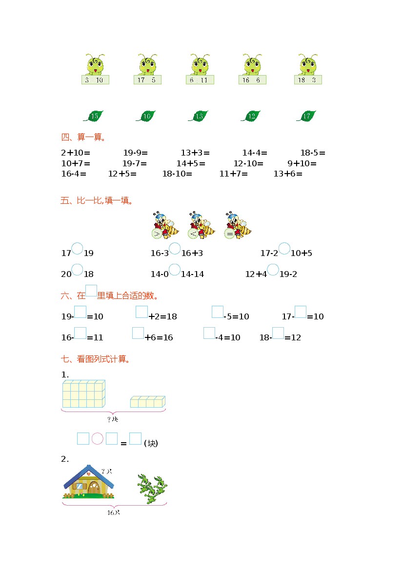 小学 一上数学(青岛54版)第五单元测试卷(A)