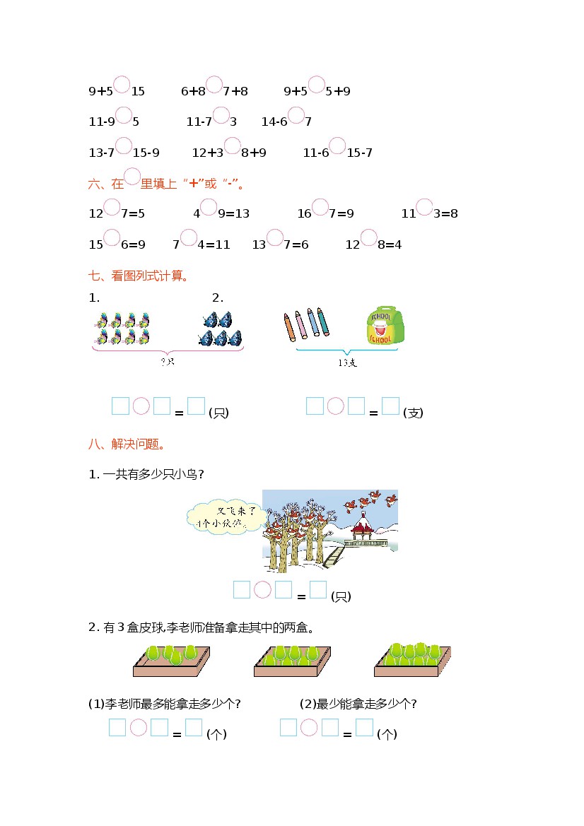 小学 一上数学(青岛54版)第七单元测试卷(A)