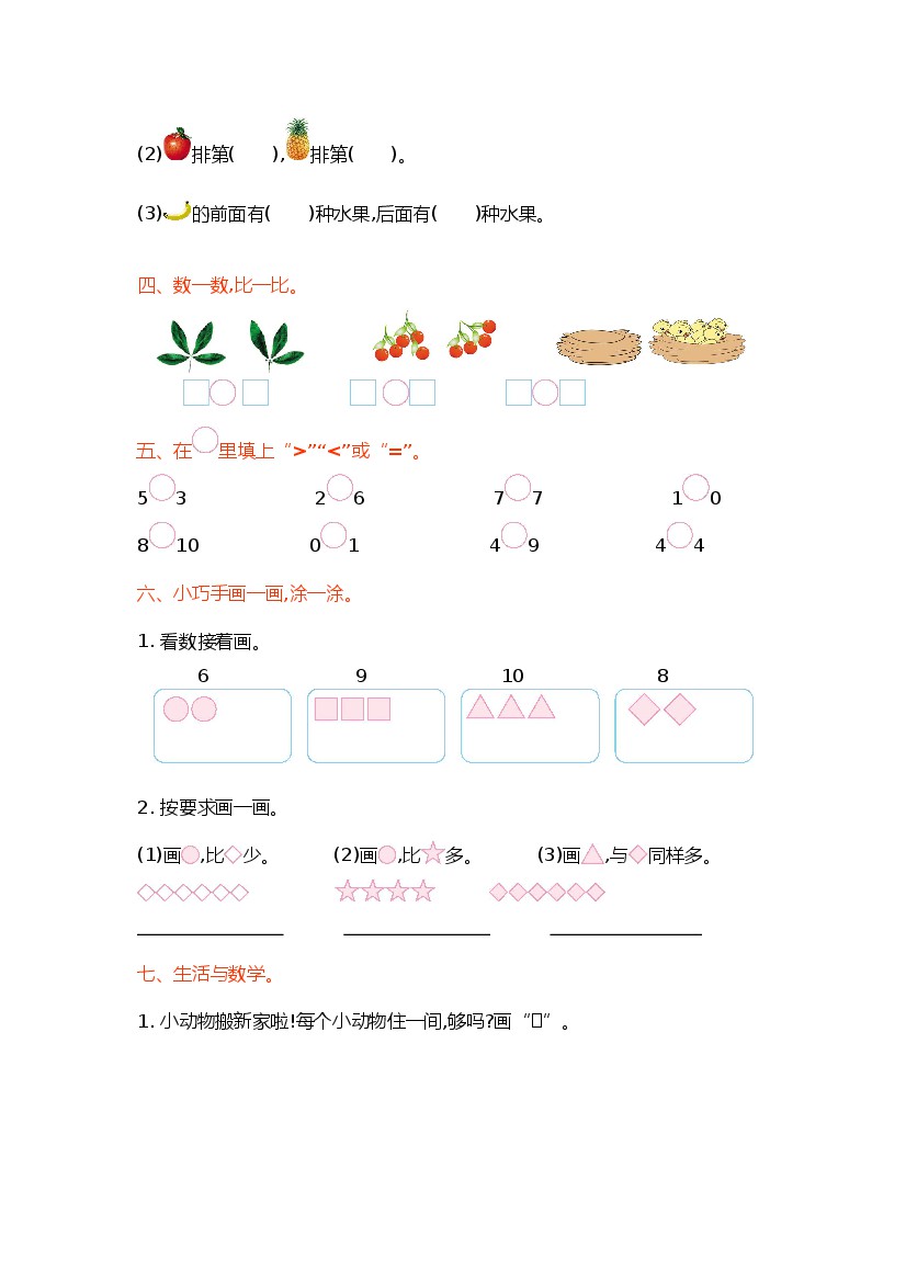 小学 一上数学(青岛54版)第一单元测试卷(A)