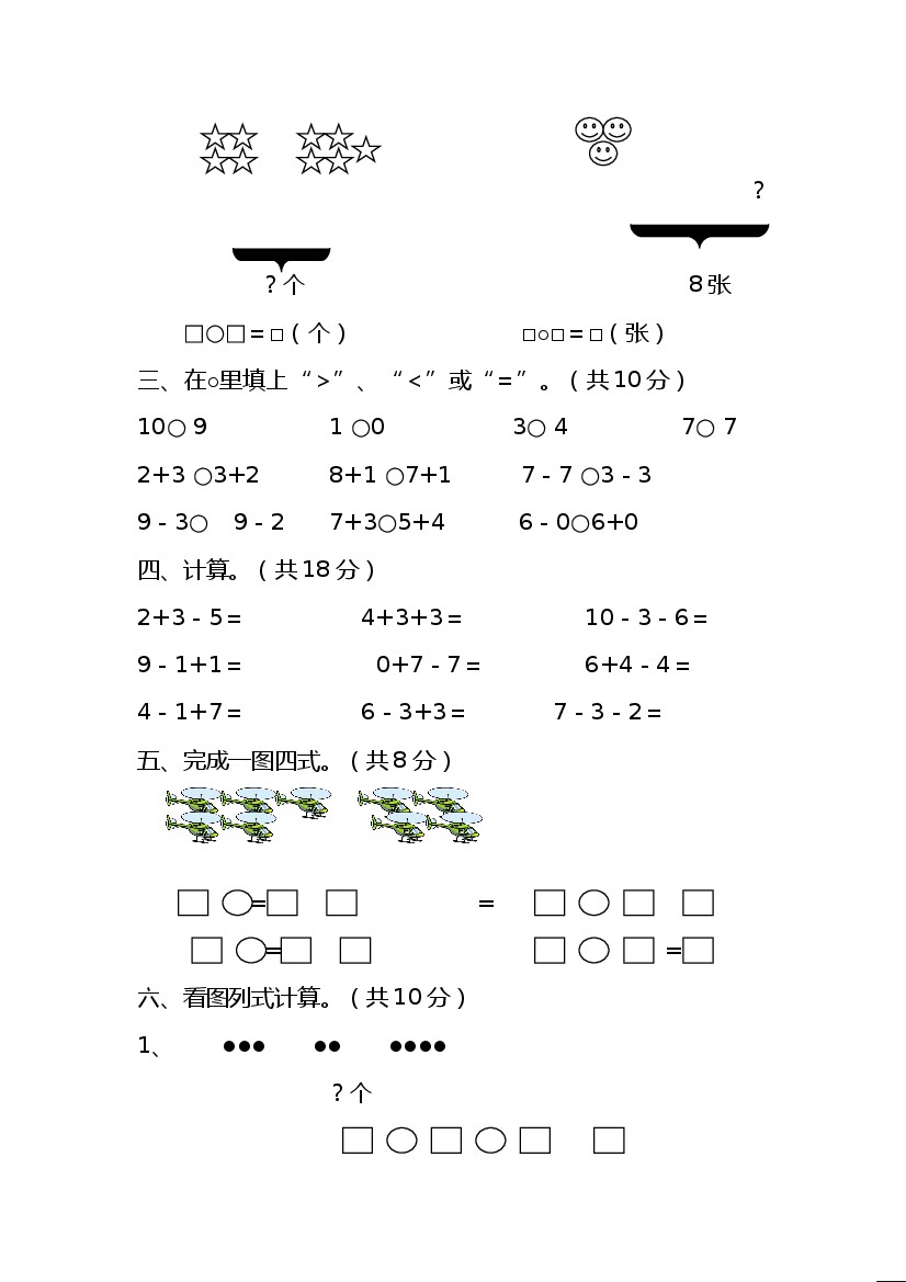 小学 一上数青岛63版9--第3单元测试卷二