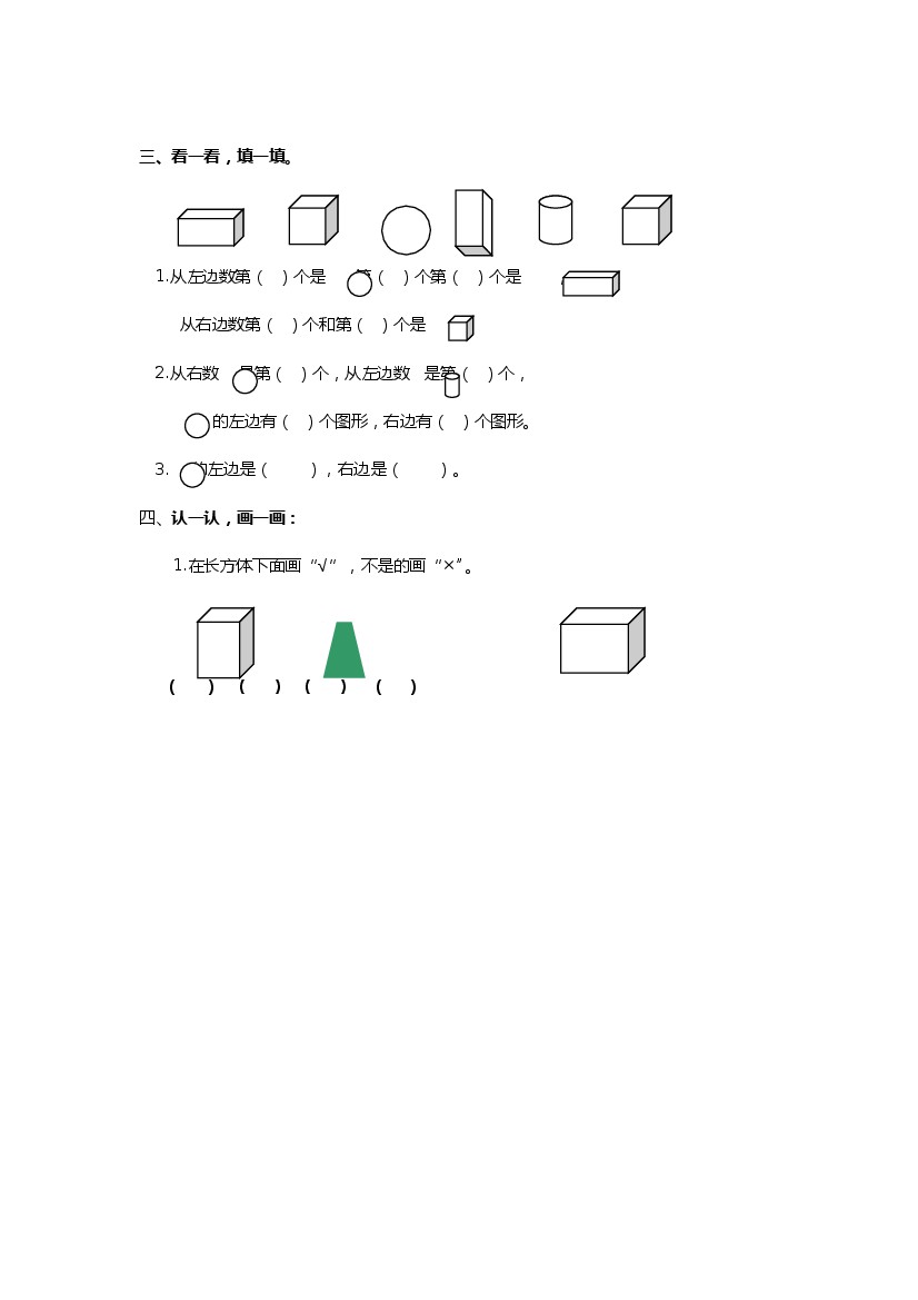 一上数青岛63版--第6单元测试卷二