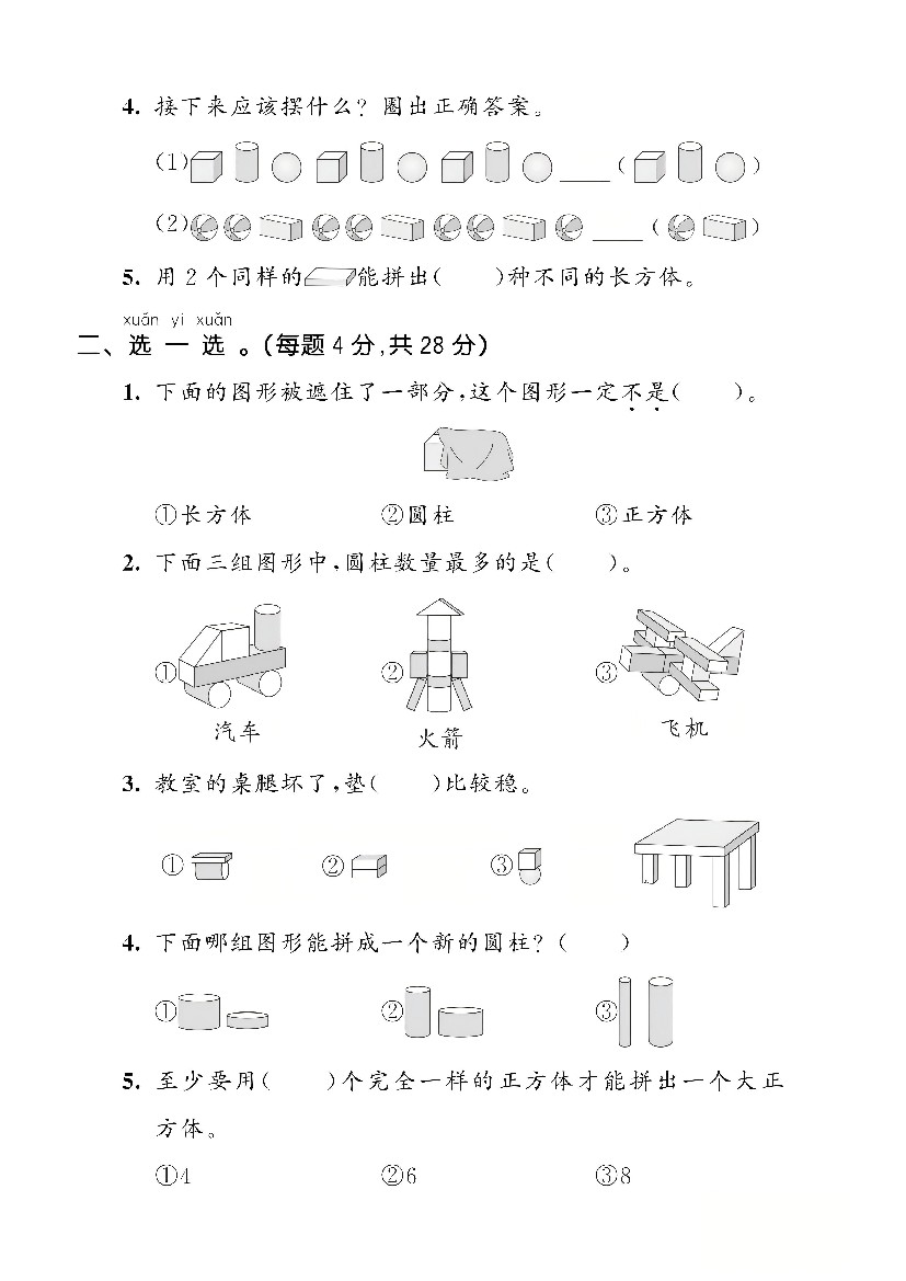 小学 25年一年级上册数学(人教版)第三单元达标过关卷