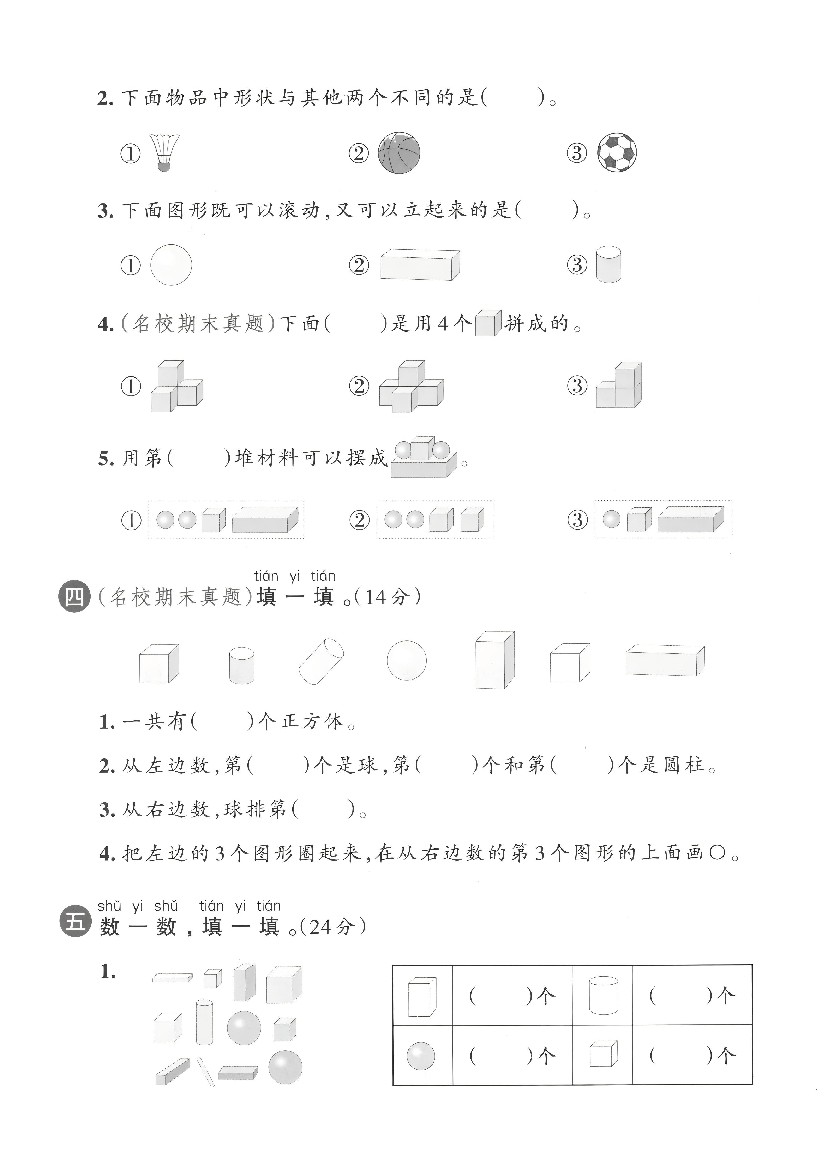 小学 25年一年级上册数学(人教版)第三单元达标测试卷