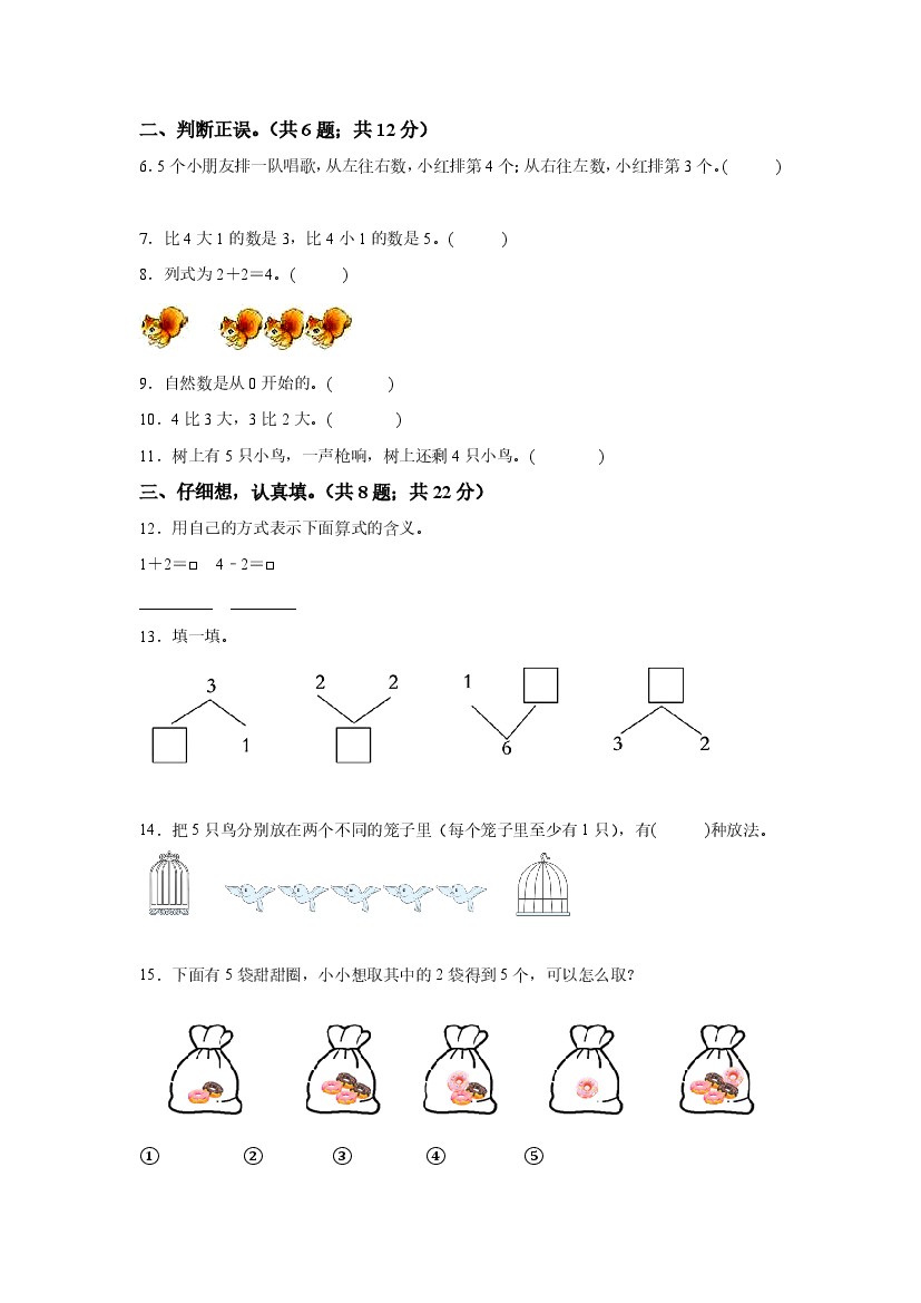 首页 > 全部 > 单元测试 > 苏教版数学一年级上册第一单元《0-5的认识和加减法》培优冲关检测卷(1)