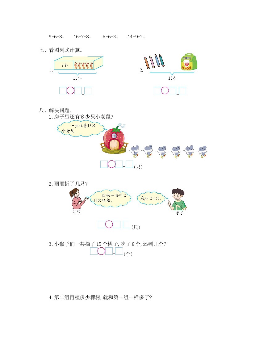 一上数学(西师版)一(上)西师版数学第六单元测试卷