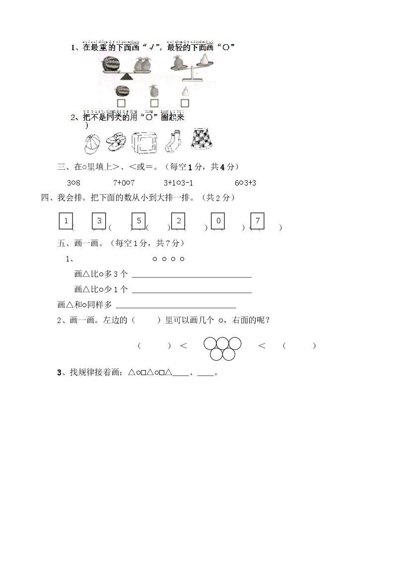 小学 一上数学(西师版){4} - 一(上)西师版数学第二单元测试卷