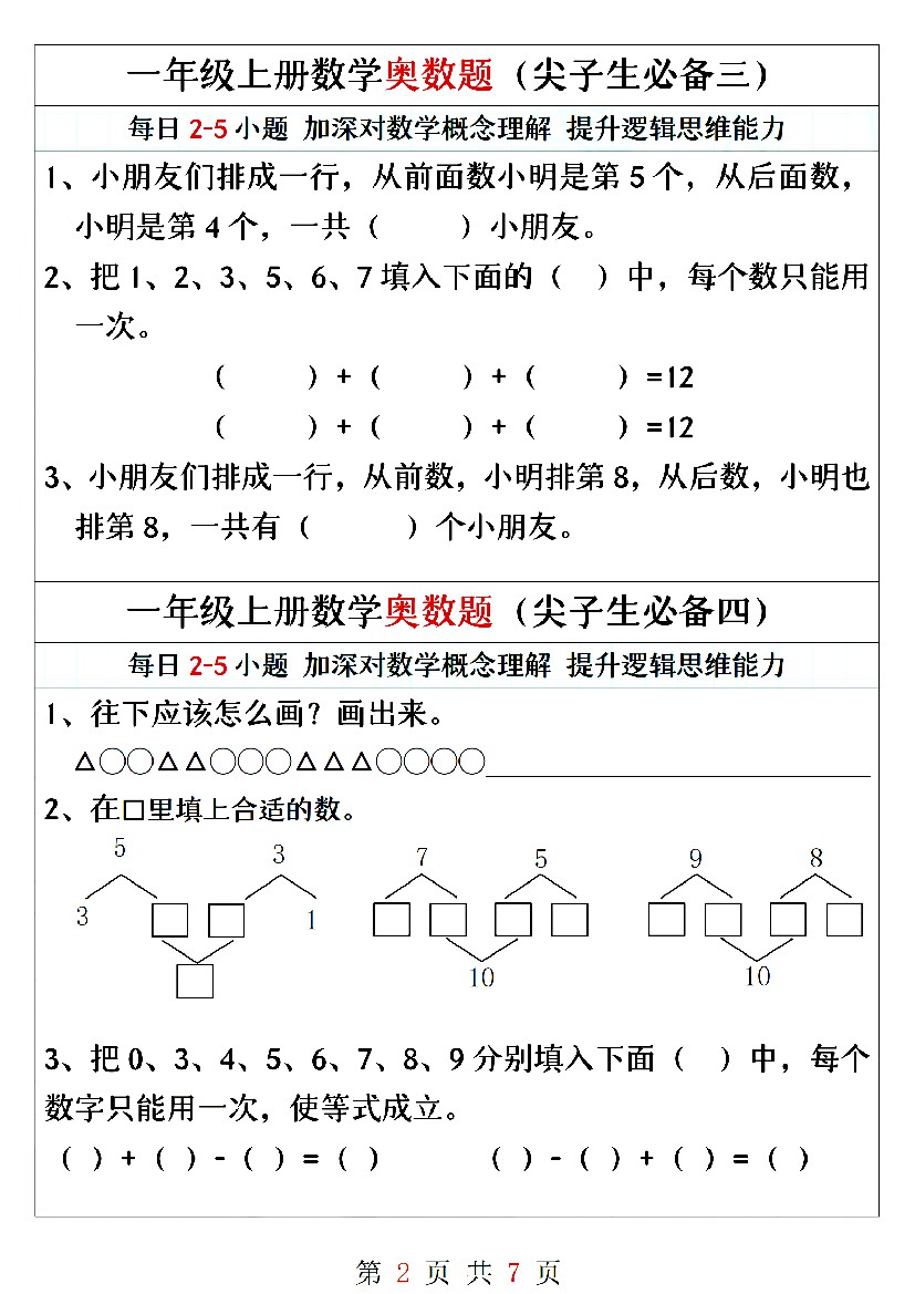 首页 > 全部 > 奥数思维 > 一年级上册数学奥数题精编训练