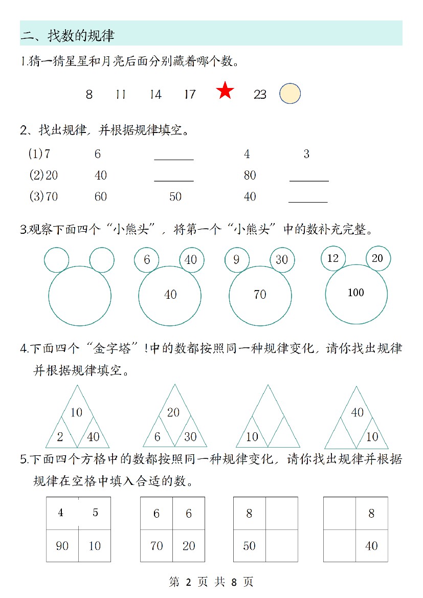 小学 新一上数学思维题专项训练(含答案8页)