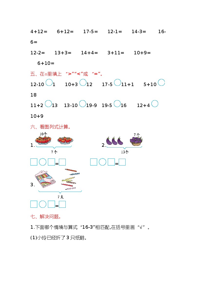 小学 一上数学(北京版)(14)--第7单元测试卷(B)