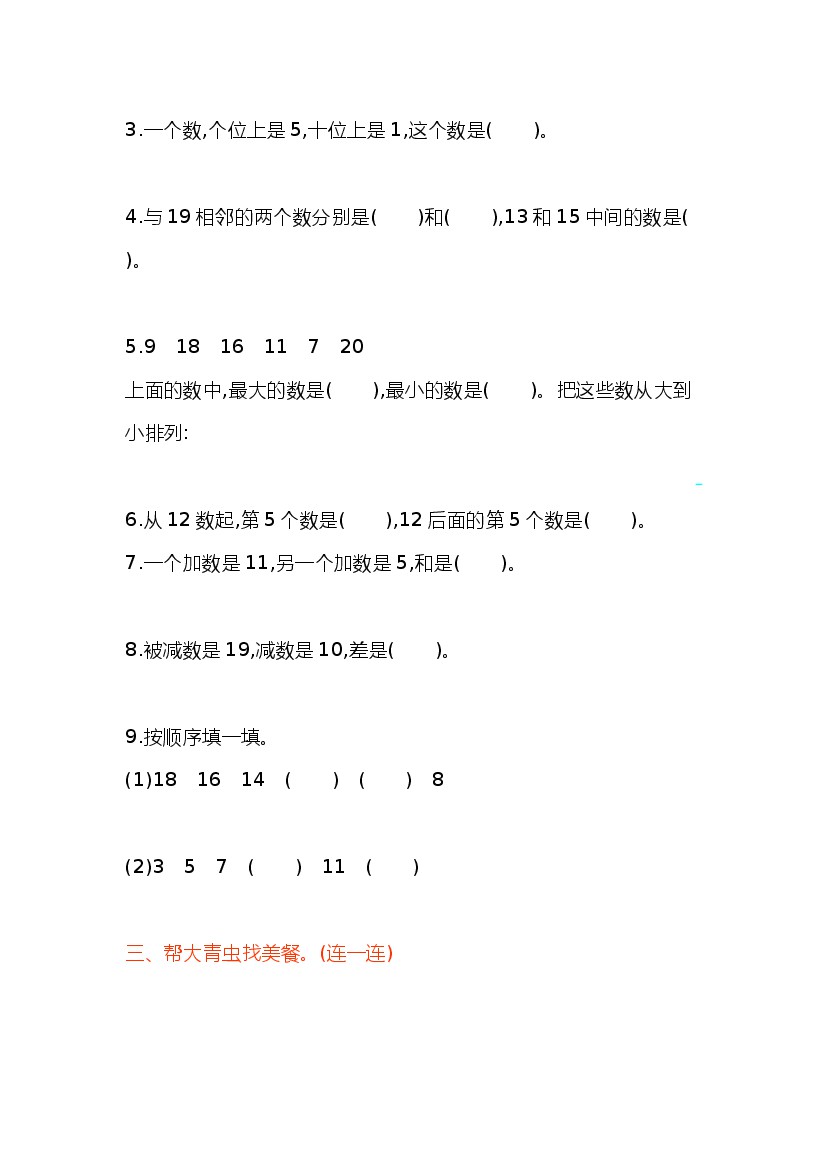 小学 一上数学(北京版)(13)--第7单元测试卷(A)