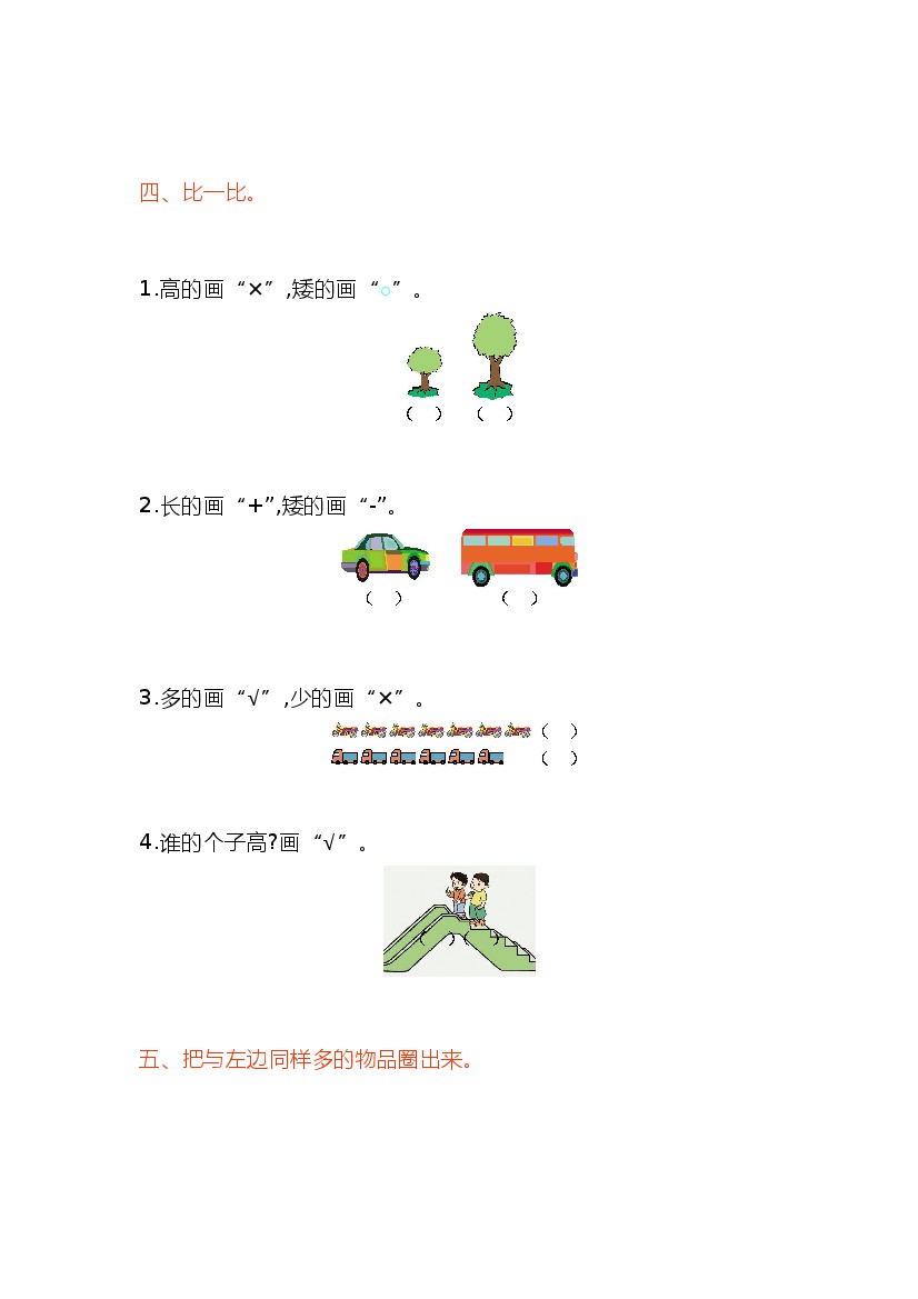 小学 一上数学(北京版)(1)--第1单元测试卷(A)