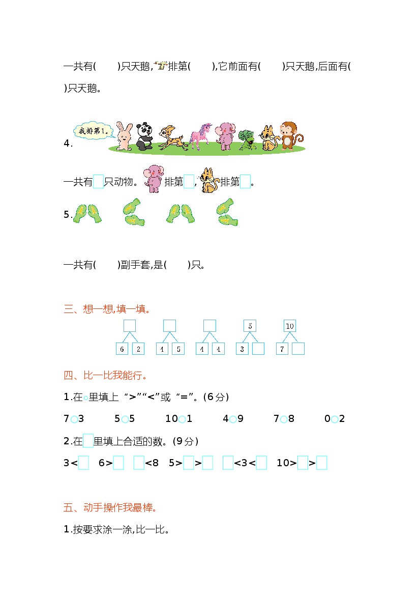 小学 一上数学(北京版)(5)--第3单元测试卷(A)
