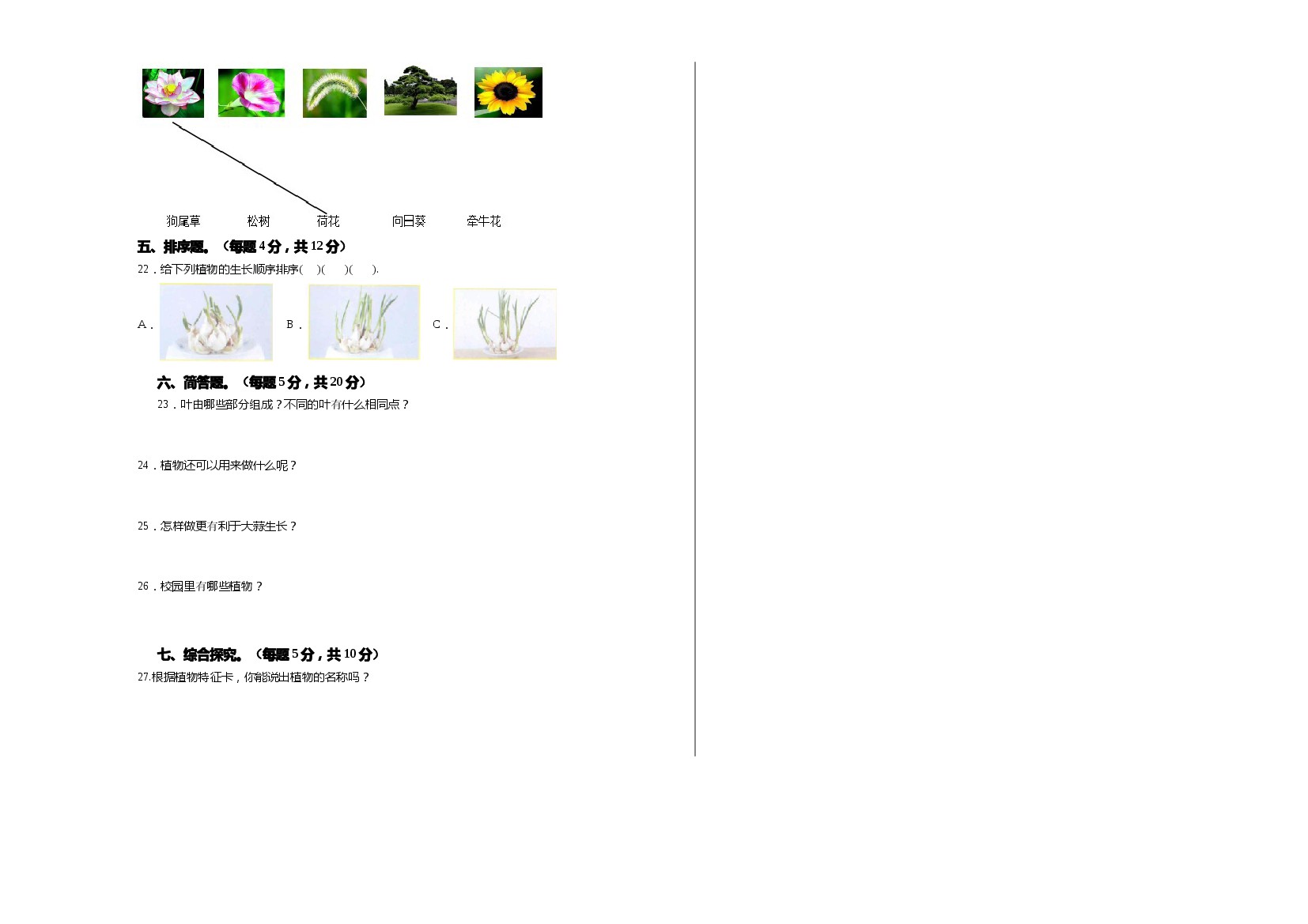 小学 25新改版一年级科学上册第一单元 植物(单元测试)A3版