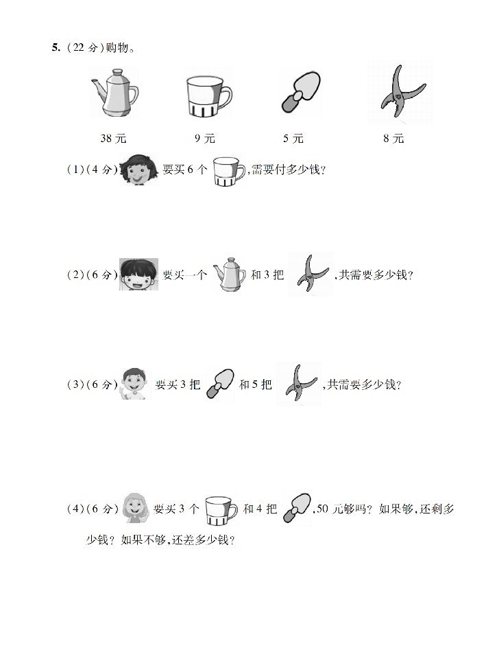 二年级(上)数学 应用题专项测试卷2《沪教版》