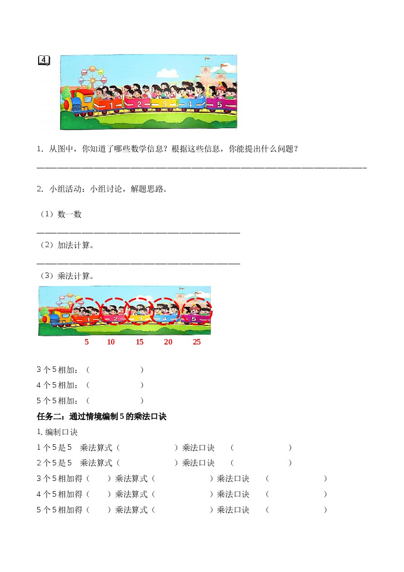 小学 25秋二年级上册苏教版数学第一单元 第4课时 5的乘法口诀(学习任务单)
