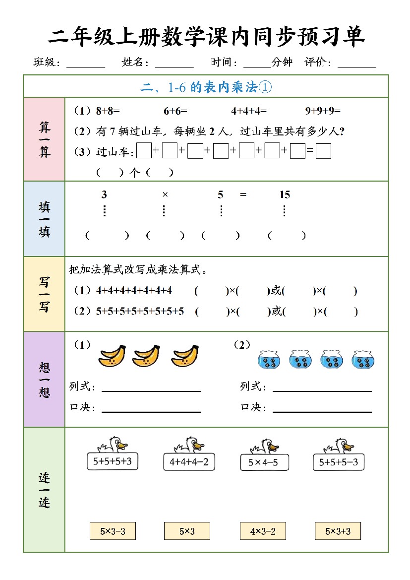 25秋苏教版二年级上册数学预习单