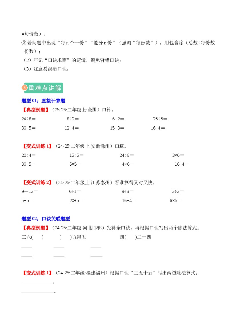 首页 > 全部 > 专项练习 > 专项提升05:1~6的表内除法(计算专练)(考点梳理+方法点拨+重难点讲解+巩固提升训练)二年级数学上册(人教版·新教材)(学生版)
