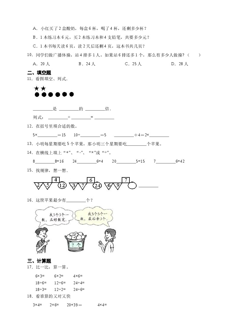 首页 > 全部 > 单元测试 > 北师大版二年级上册第七单元《乘法口诀(二)》单元检测卷(含答案)