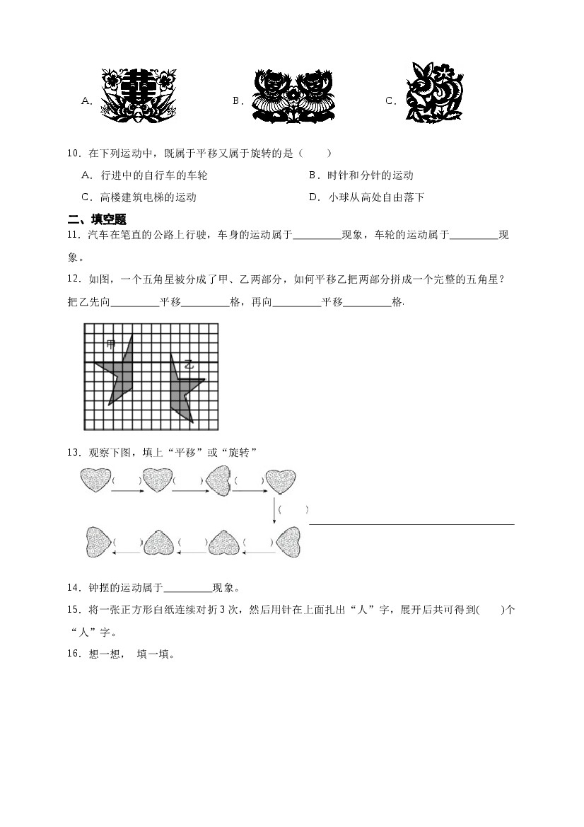 小学 北师大版二年级上册第六单元《图形的运动(一)》单元检测卷(含答案)