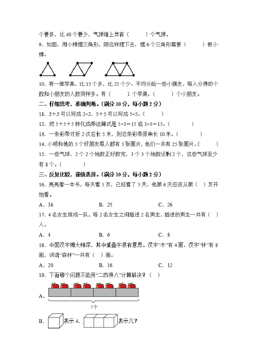 首页 > 全部 > 单元测试 > 25秋二年级上册数学苏教版第一单元1~6的表内乘法(单元测试•提升卷)(A4版)