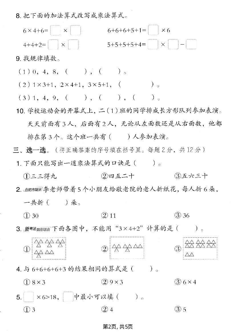 小学 二年级(上)苏教版数学第一单元达标测试卷2