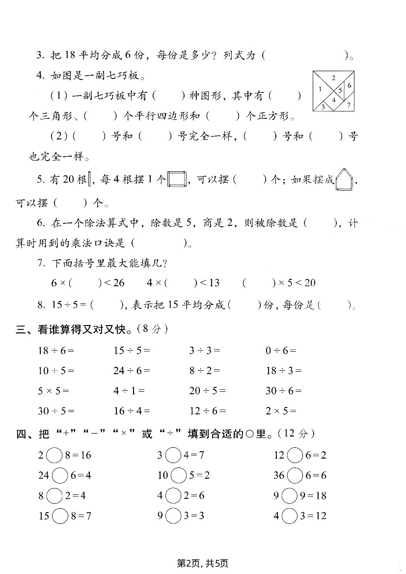 首页 > 全部 > 单元测试 > 二年级(上)数学第二单元测试卷4《苏教版》