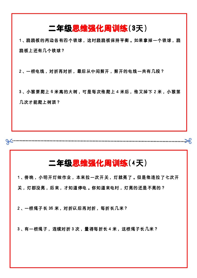 首页 > 全部 > 奥数思维 > 二年级(上)数学 思维题周训练小纸条